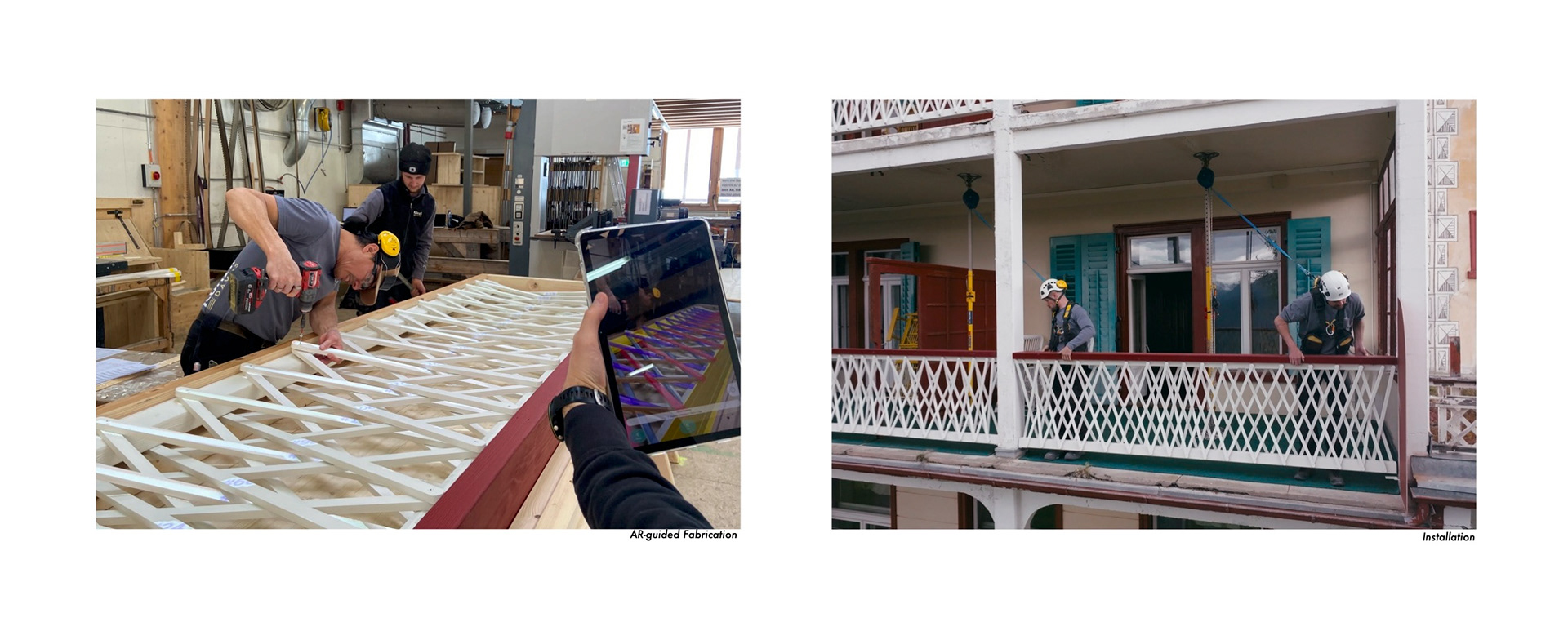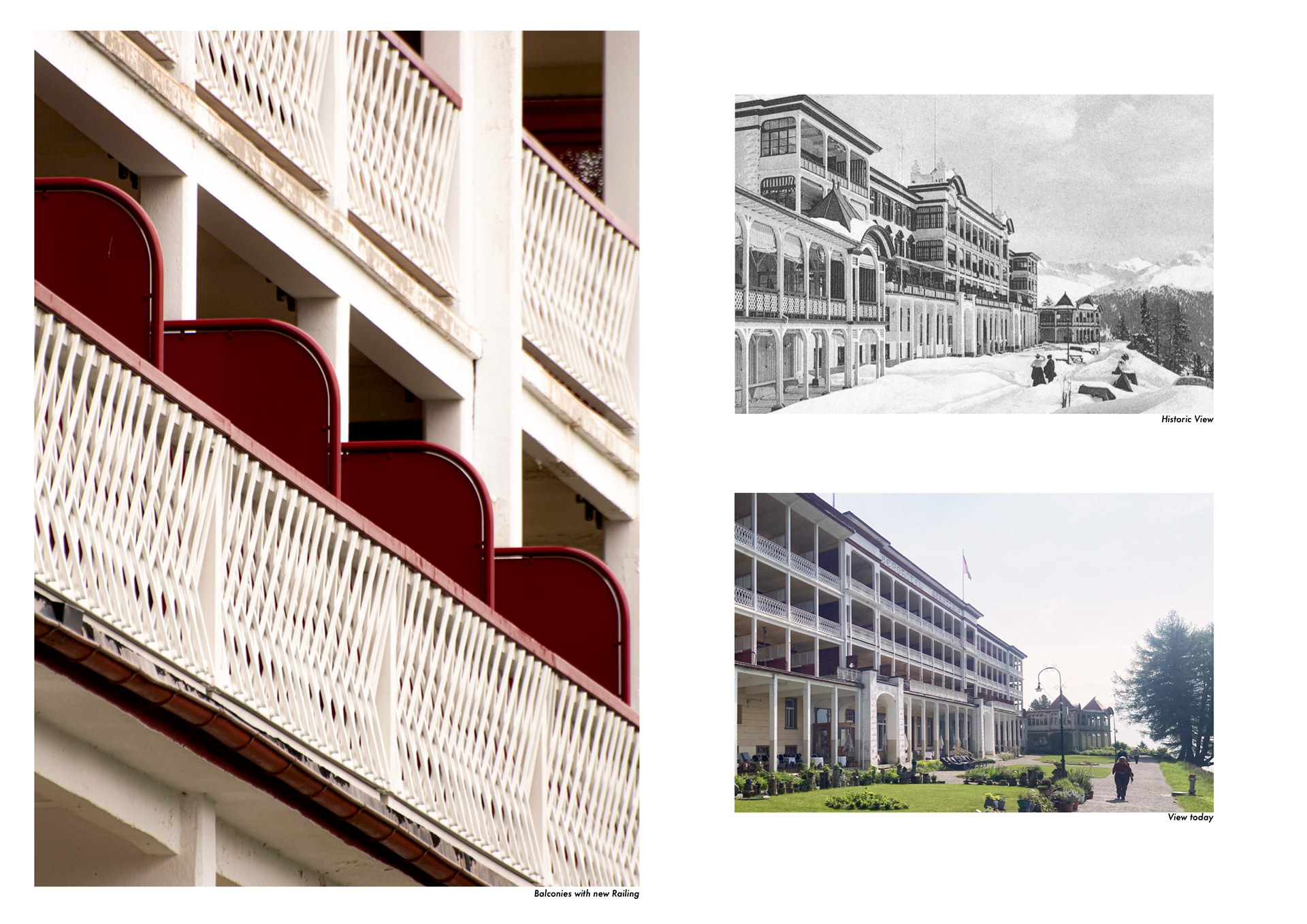 The project focused on the design and realization of new balustrades for the historic Hotel Schatzalp in Davos, originally built as a sanatorium and among the earliest reinforced concrete buildings in Switzerland. The existing wooden railings were structurally degraded and no longer met current safety standards, requiring a replacement system that preserved the building’s distinctive character while ensuring long-term durability. Using computational design and digital fabrication, the original patterns were reinterpreted into a contemporary yet historically sensitive system, resulting in 93 unique balustrades composed of more than 5,300 individual timber elements. The work included coordination, the design of separation wall elements, and the development of detailed construction drawings to ensure consistency between design intent, fabrication logic, and on-site assembly. The balustrades were manufactured locally and assembled using screw connections only, enabling straightforward maintenance, repair, and replacement while supporting sustainable long-term use.